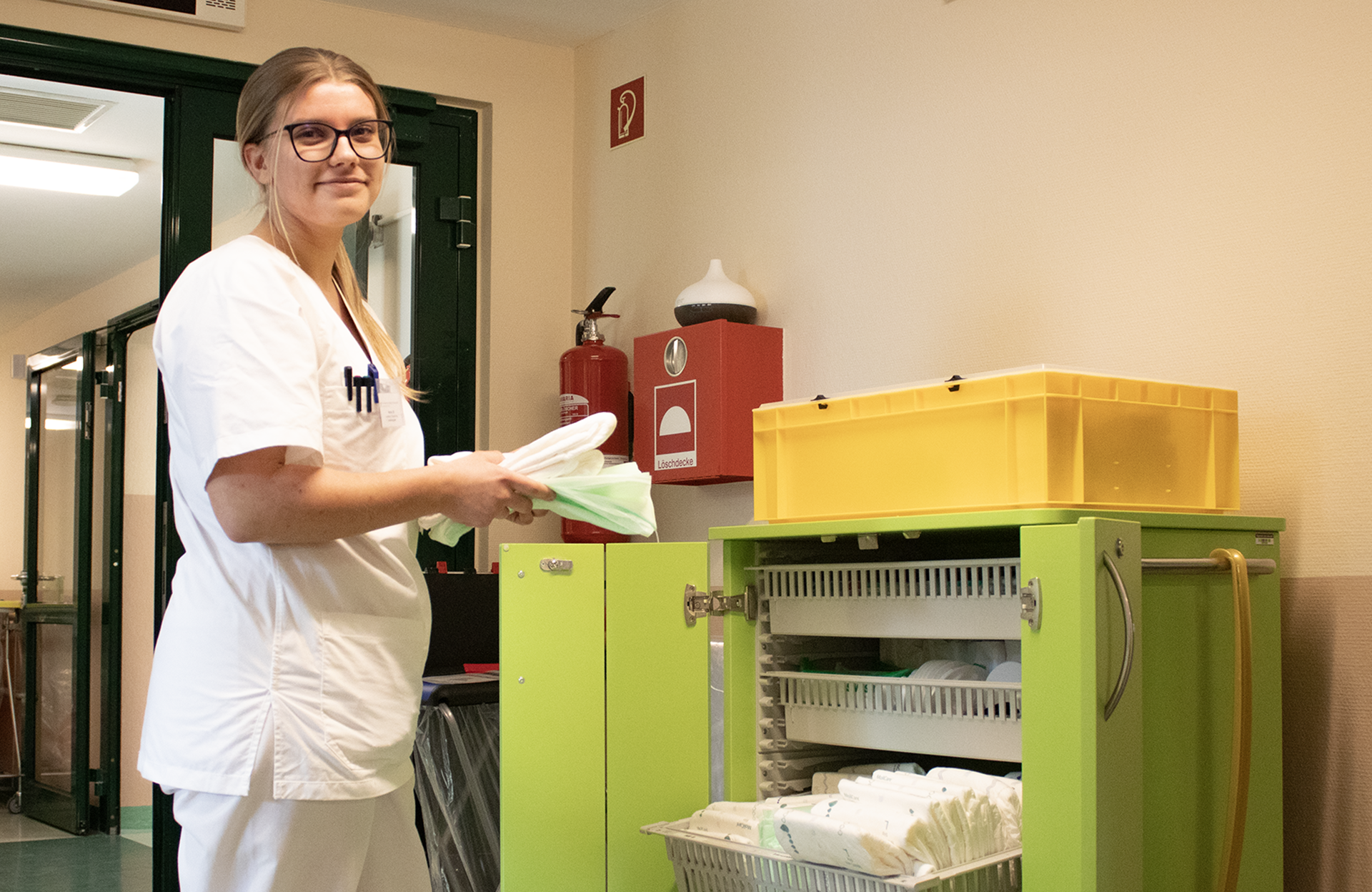 Zu ihren ersten Aufgaben gehörten das Vorbereiten von Zimmern, Betten richten und Essen anreichen. Inzwischen hat sie viel in der Grundpflege gelernt und traut sich einzelne Tätigkeiten auch selbstständig zu. „Als Schülerin muss man viel fragen und Eigeninitiative zeigen. Dann sind die Kollegen auch sehr offen und erklären einem alles.“ Das Miteinander im Haus beschreibt sie als sehr unterstützend. Auf ihrer Station herrsche ein gutes Klima, und auch stationsübergreifend helfe man sich selbstverständlich aus. Aktuell sind vier Auszubildende im ersten Lehrjahr gestartet. Zwei befinden sich derzeit im Schulblock, eine mit ihr auf Station.